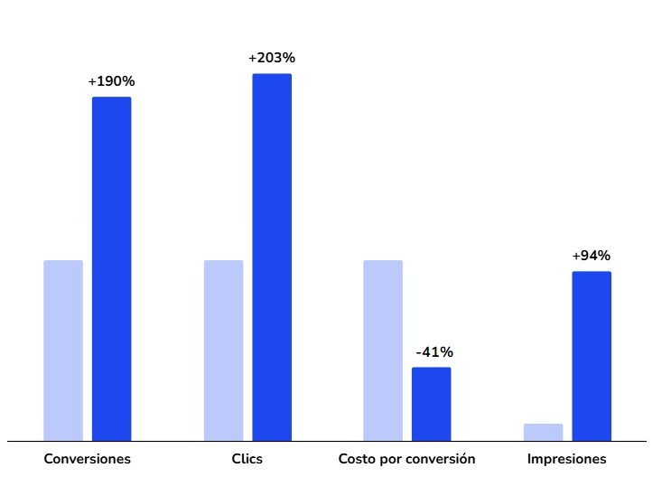 - Optimización orientada a negocio: conversiones mejoradas, y etiquetado de lead quality; ajustes periódicos de pujas y creatividades validados con pruebas A/B.